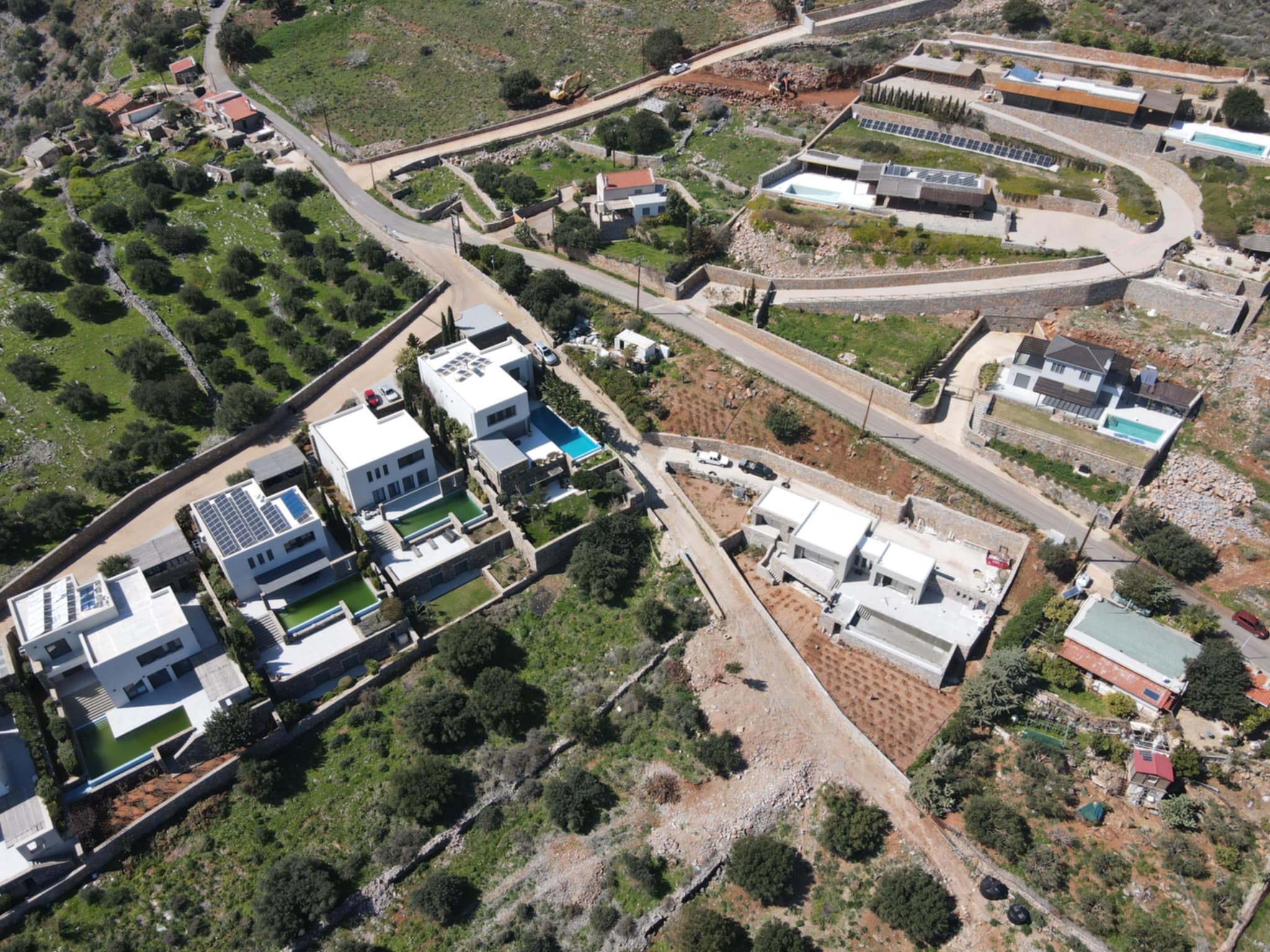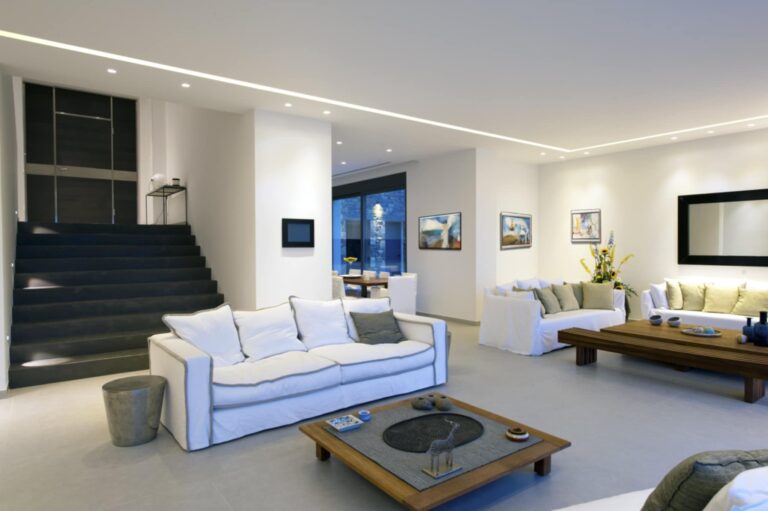 The residence is arranged over spacious, thoughtfully designed interiors and features six bedrooms, including one independent guesthouse, as well as seven elegant bathrooms. The interior design is defined by clean lines, high-quality materials, and large open-plan spaces that enhance natural light and fully showcase the exceptional sea views toward Spinalonga.