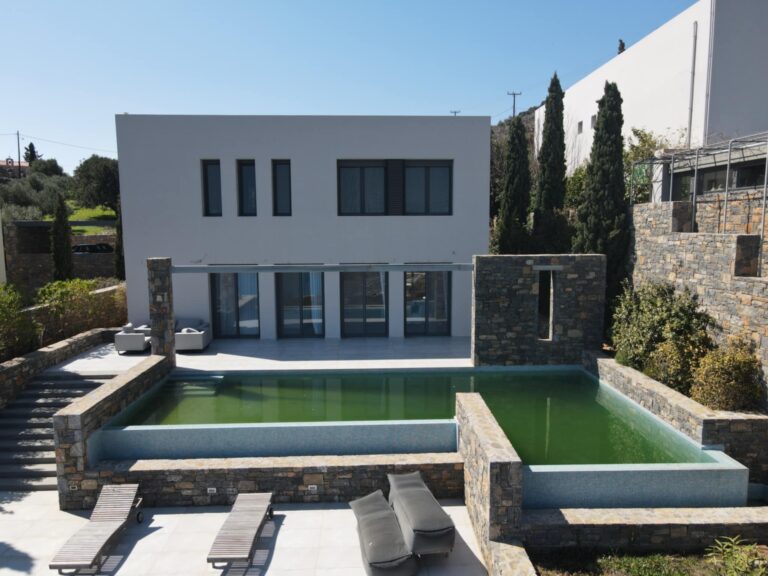 Set in a prime location with unobstructed panoramic views of the island of Spinalonga, this luxury villa of 450 sq.m., built in 2015, is offered for sale, combining contemporary architecture, advanced technology, and a high level of privacy.
